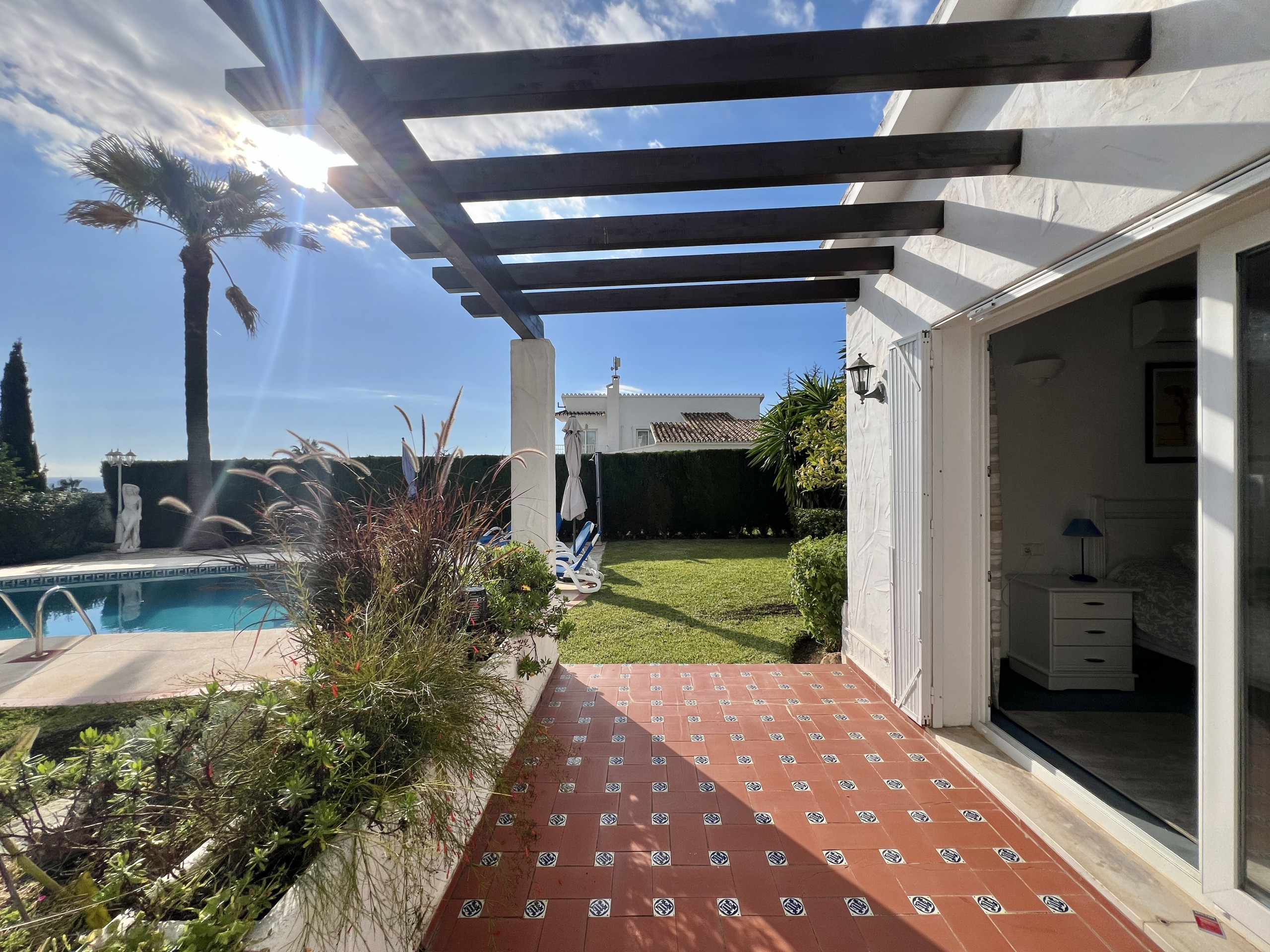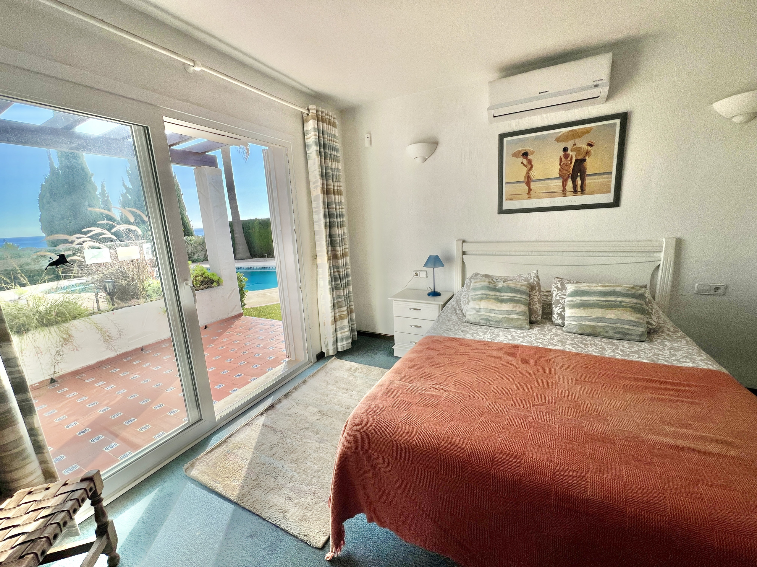 This beautiful and sunny villa, located in Calahonda, is tastefully decorated and offers all the comforts you need for a pleasant and carefree vacation. You will enjoy magnificent sea views from the south-facing garden, the ideal place for a meal with the family or for a drink, as well as a private swimming pool. The villa has been recently completely renovated and refurbished, now offering open-plan areas and beautiful ceiling heights in a boho chic and cozy style. You will benefit from three large bedrooms and two modern bathrooms, as well as a fully equipped American kitchen for preparing your gourmet meals.