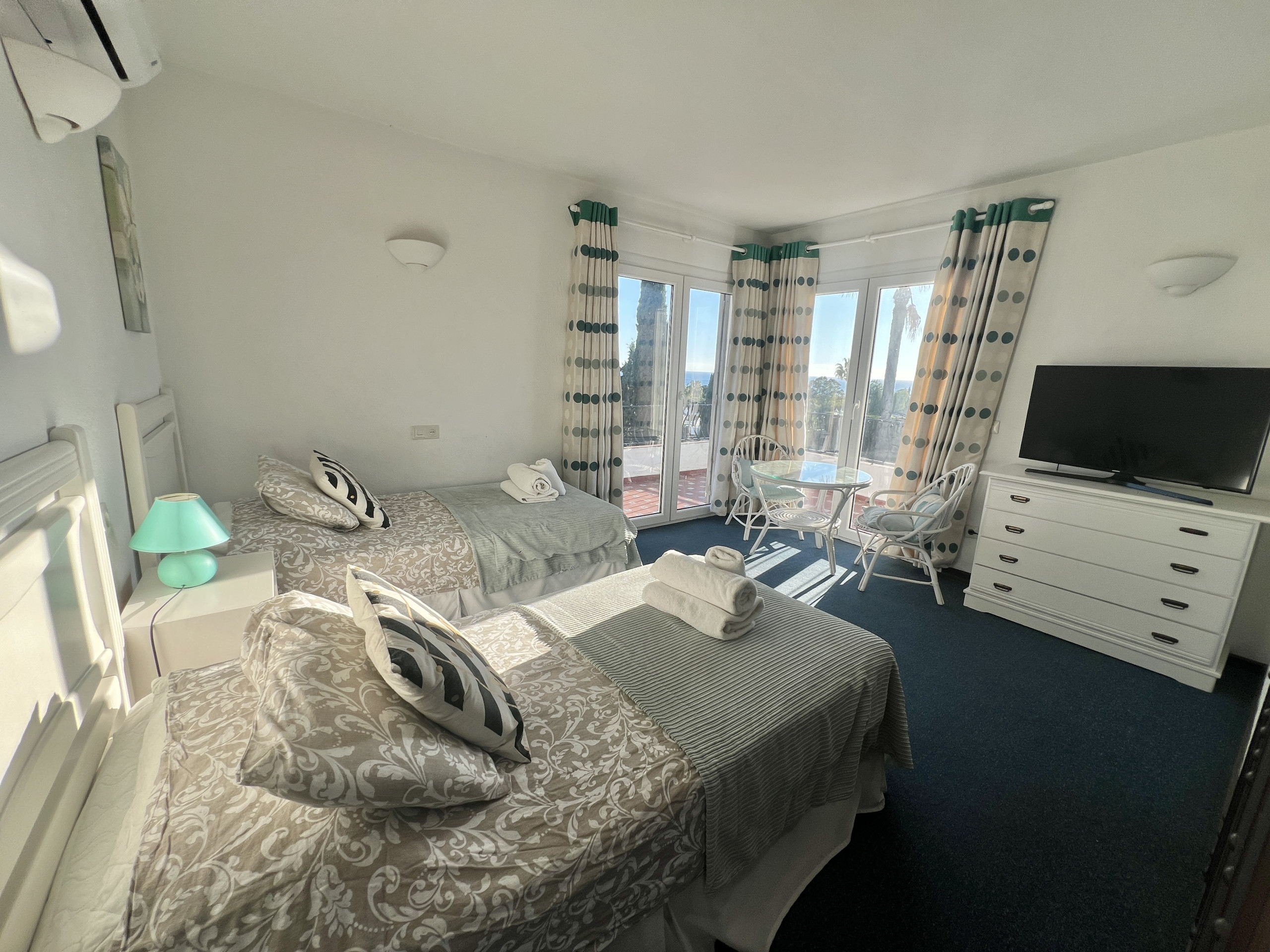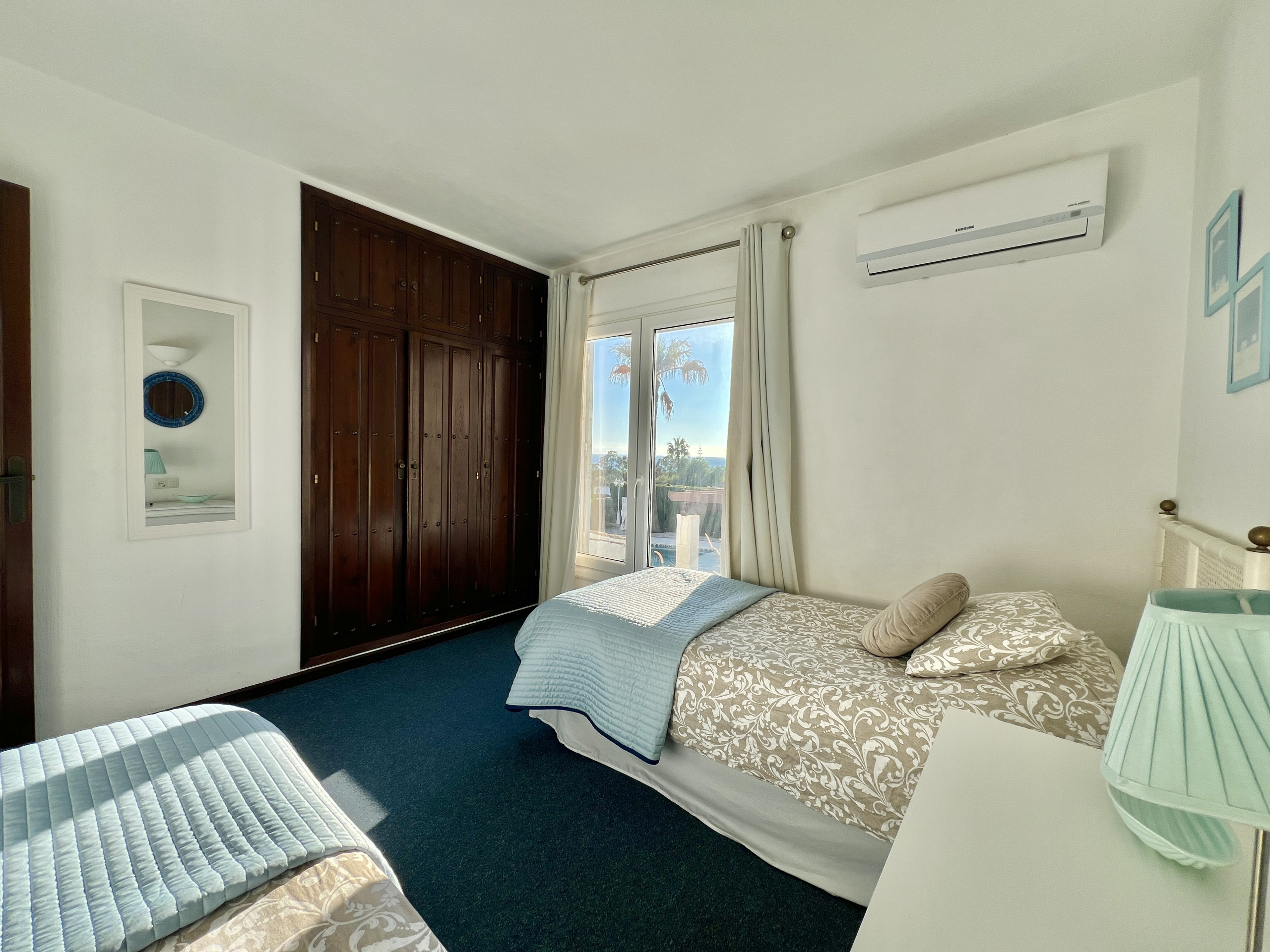 Upstairs, you will find a bathroom as well as two other bedrooms, offering a magnificent view of the swimming pool and the sea, and a beautiful sunny terrace.
