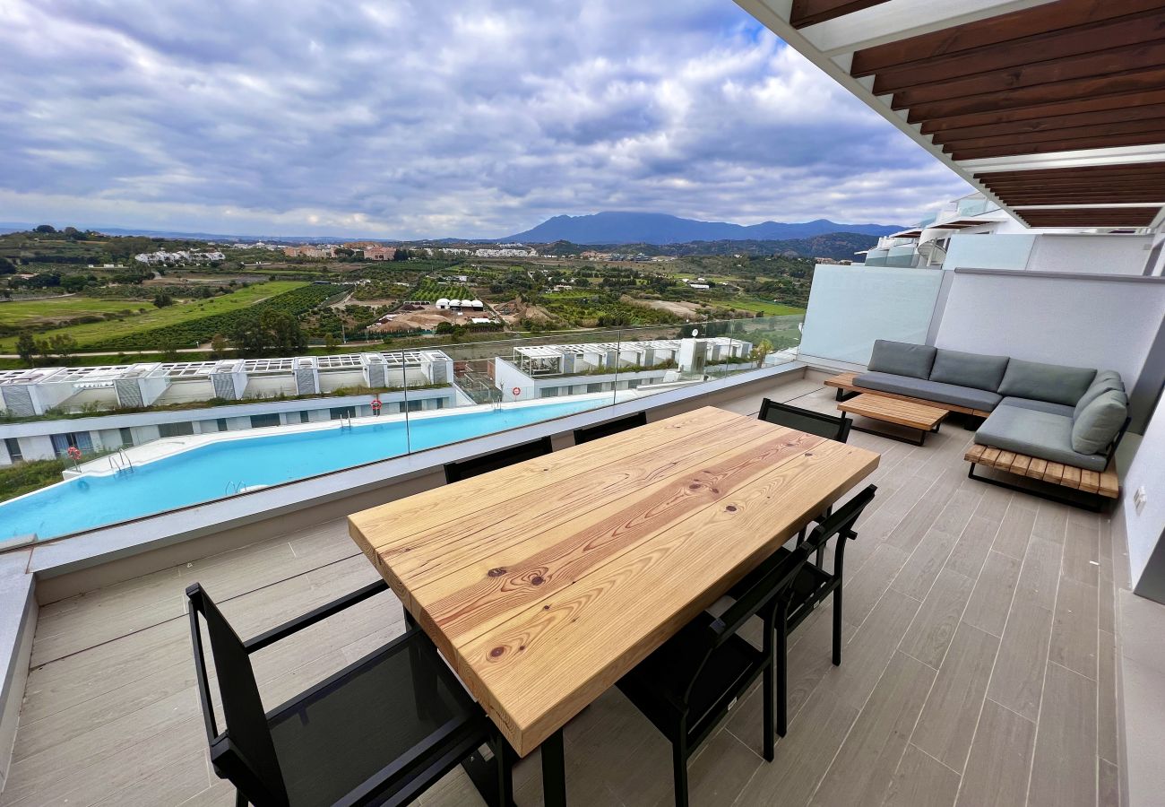 Magnífico ático dúplex con impresionantes vistas al Mediterráneo. La ubicación es perfecta, a poca distancia de servicios del bonito pueblo de Cancelada y cerca de la playa.