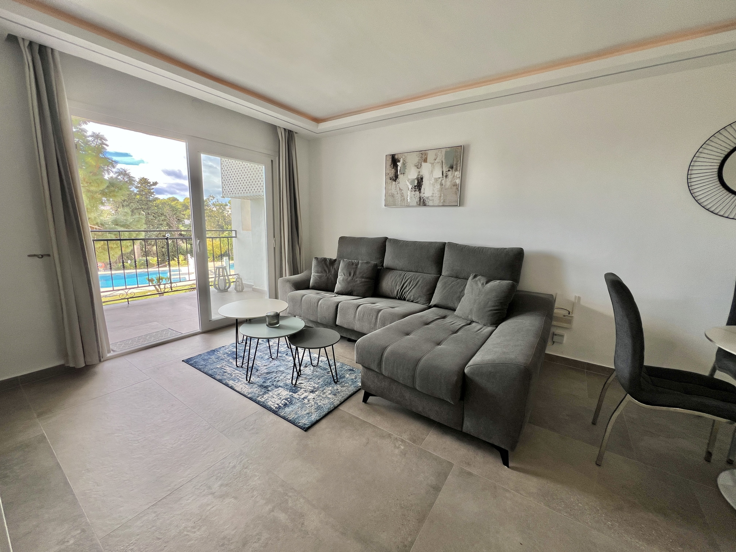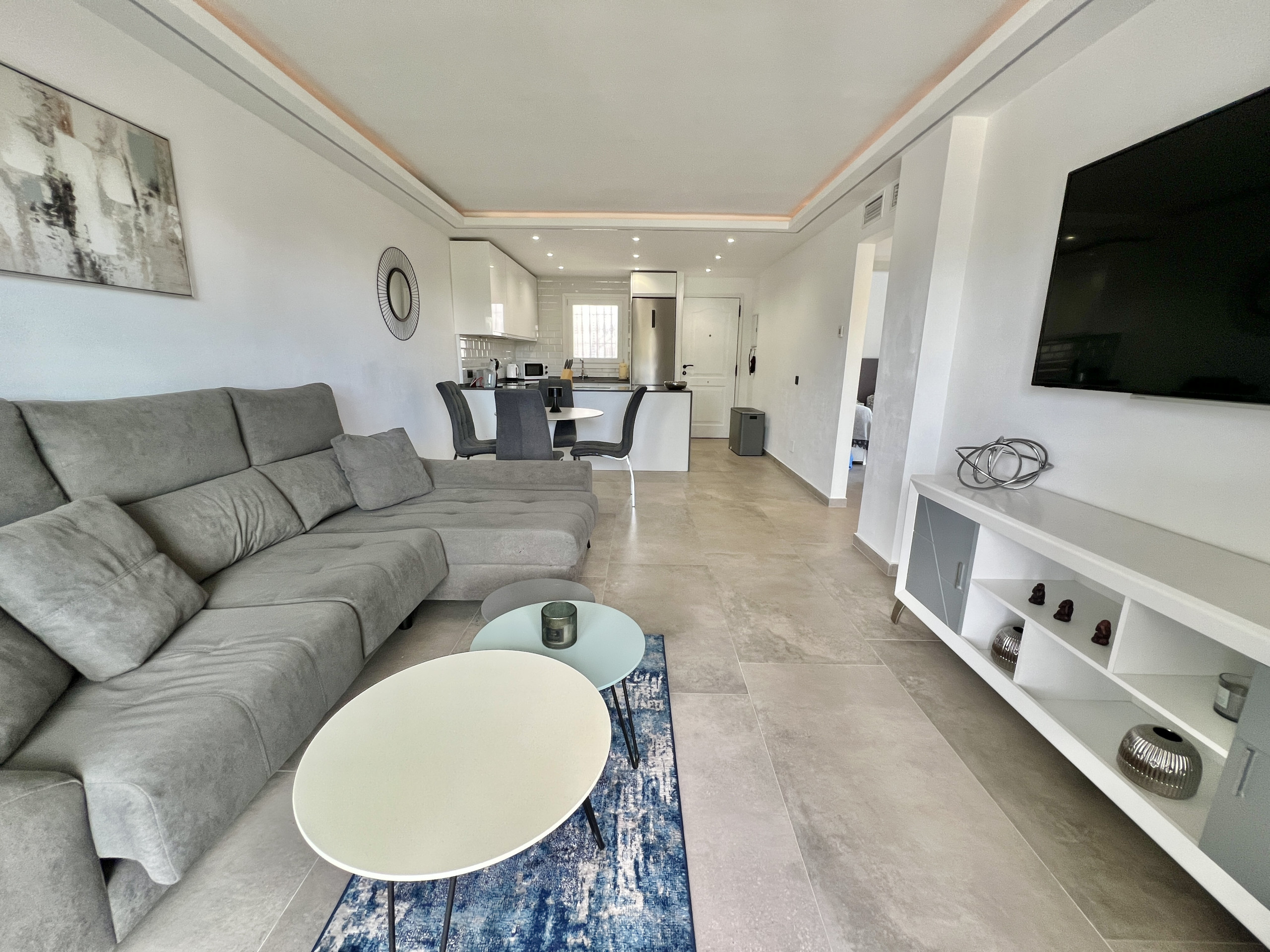 Descubra este moderno y elegante apartamento ubicado en la encantadora residencia de Riviera del Sol en Mijas Costa, perfectamente adaptado para familias, parejas y grupos de amigos en busca de una estancia cómoda.