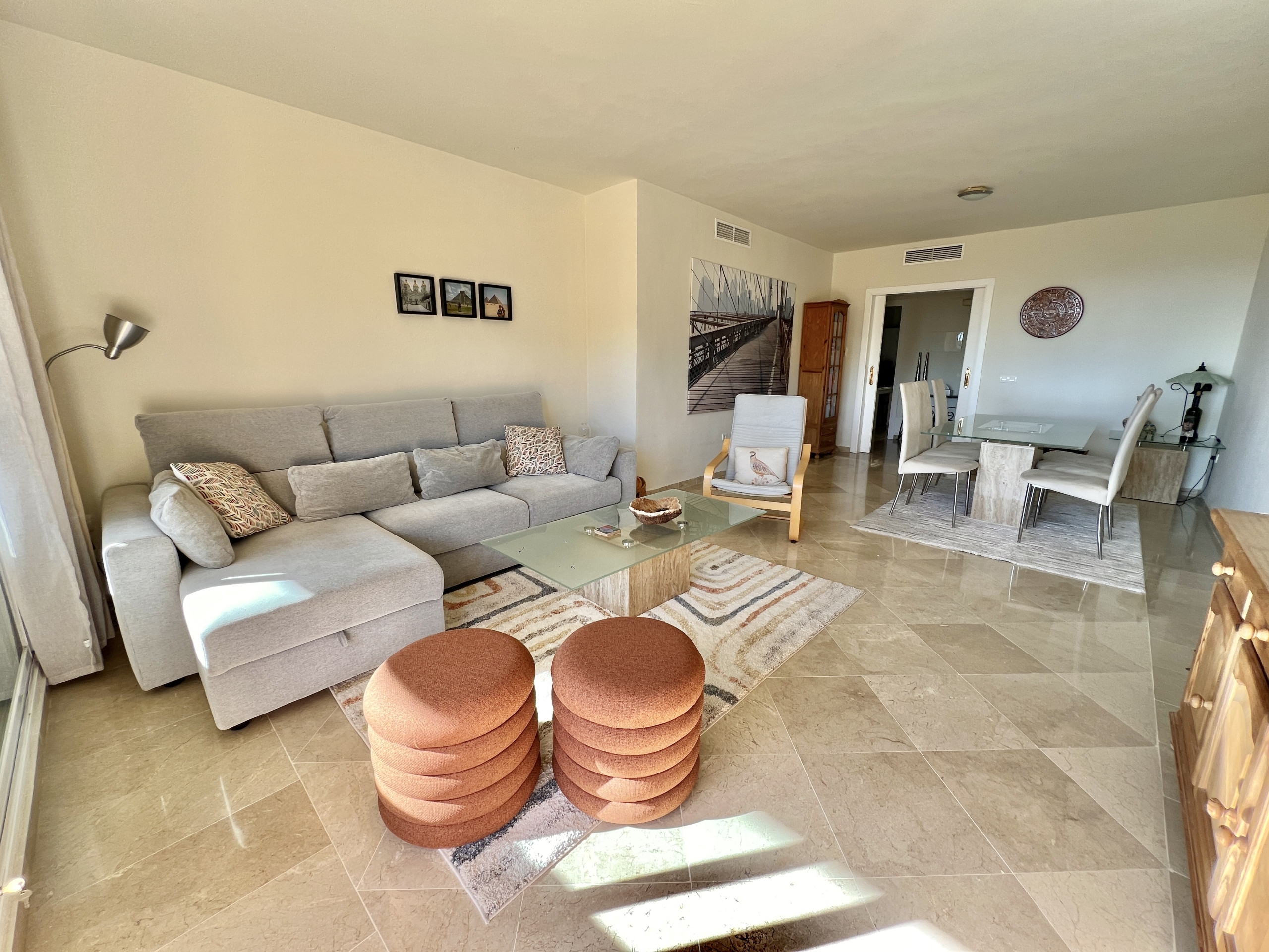 L'appartement lui-même dispose de 2 chambres et 2 salles de bain, dont une avec douche et baignoire. Vous pourrez y profiter d'un séjour confortable et relaxant. Le coin repas est idéal pour savourer des repas faits maison et la cuisine est entièrement équipée. Le grand balcon ensoleillé est l'endroit idéal pour se détendre et profiter autant de son coin lounge que des repas al fresco.
